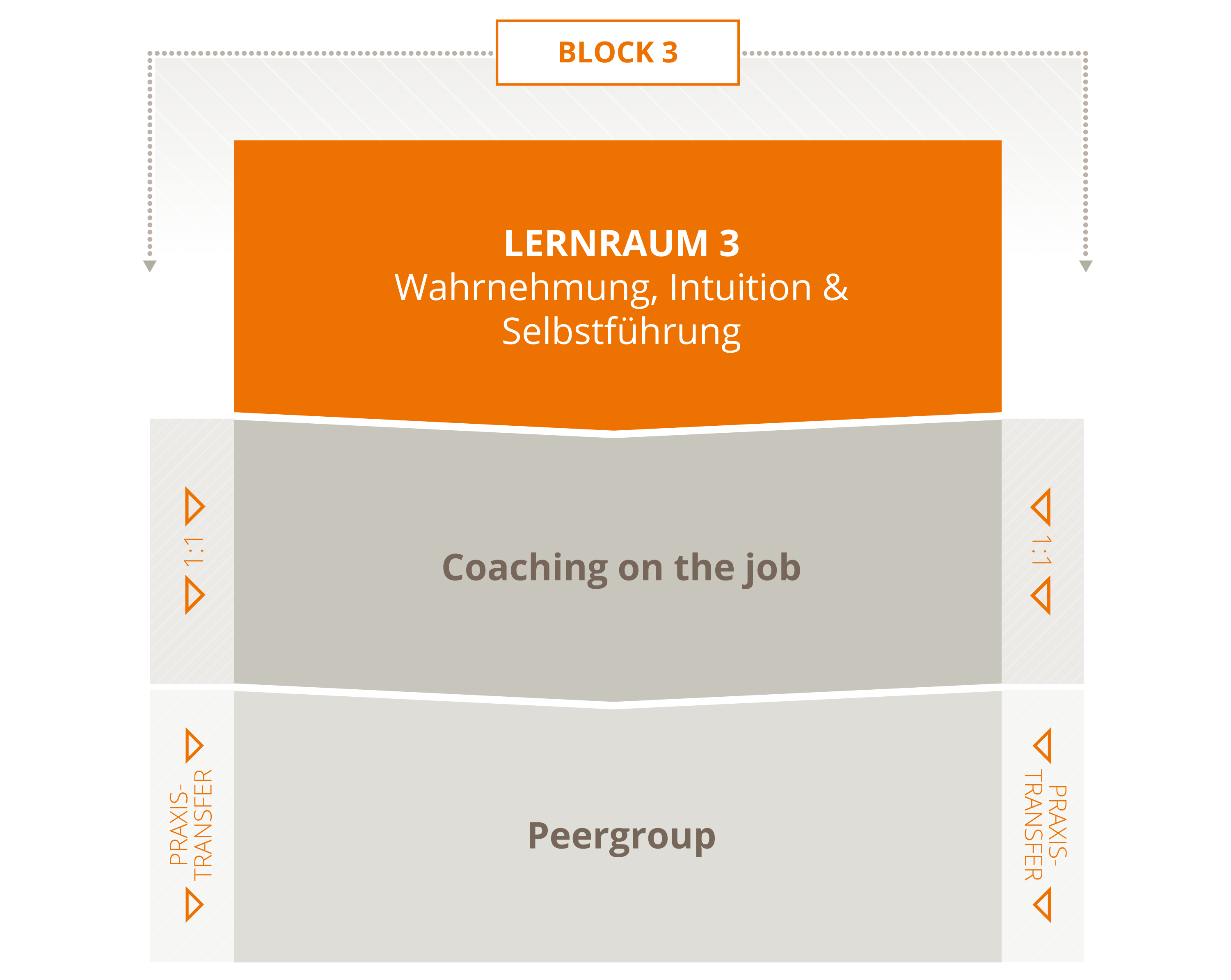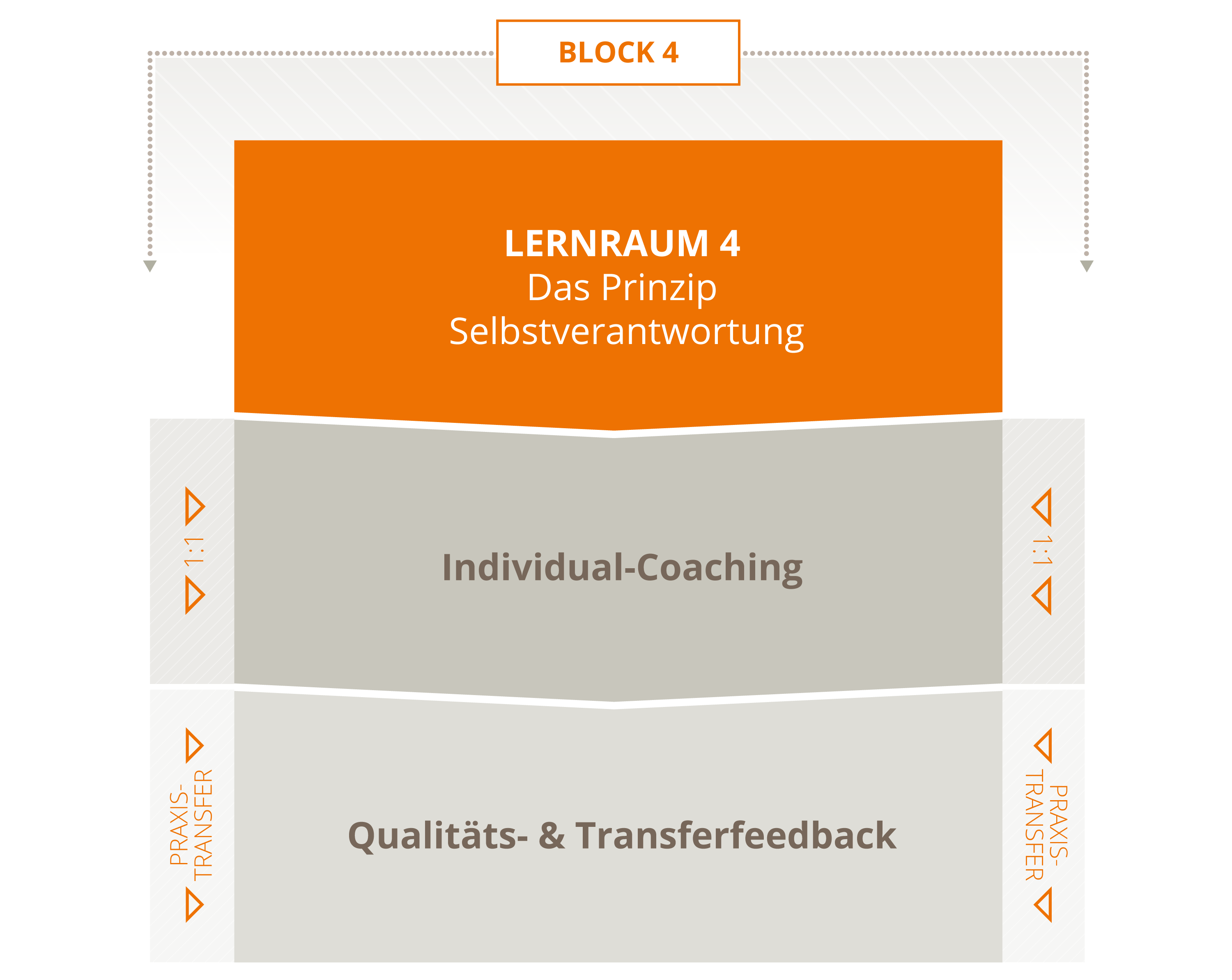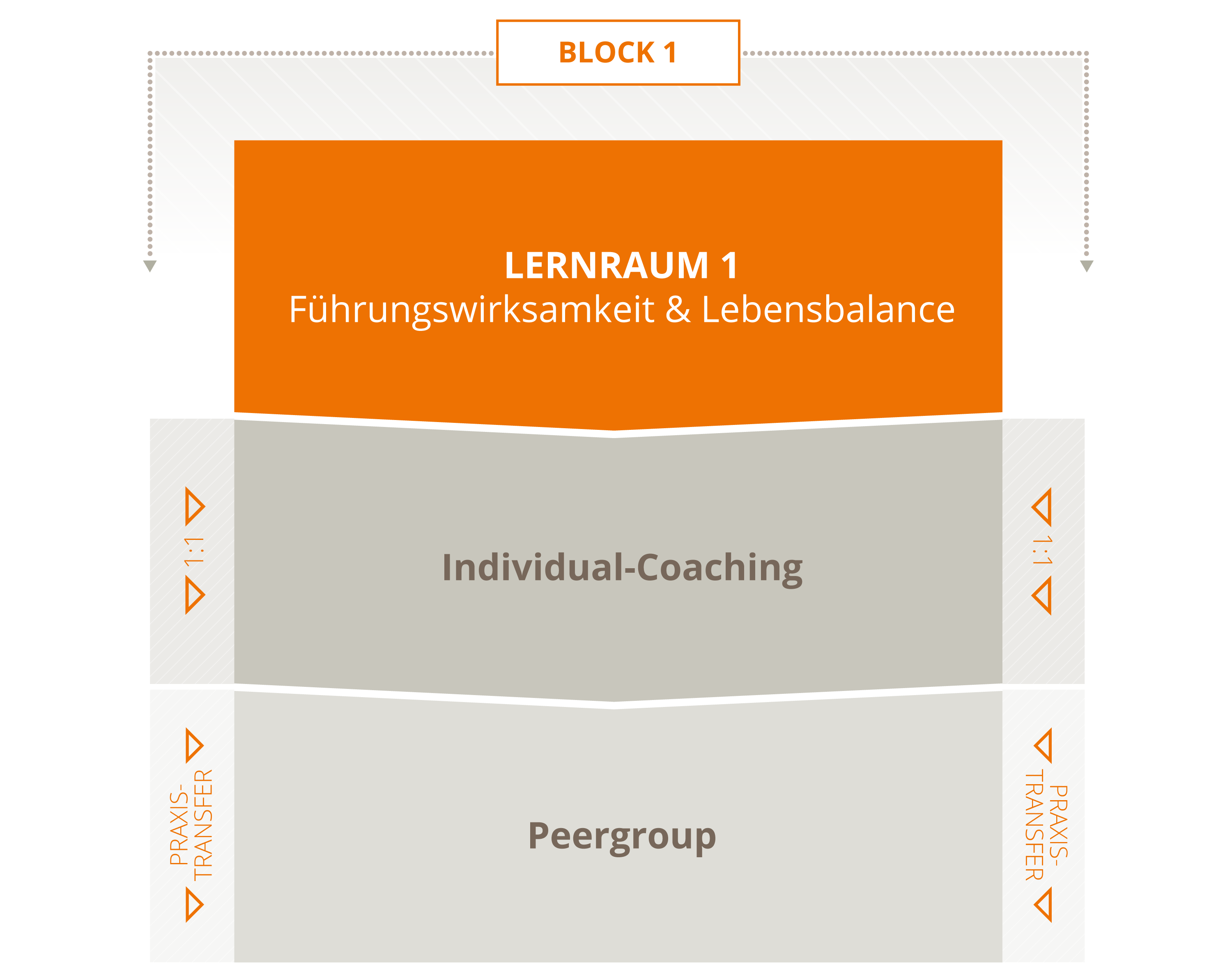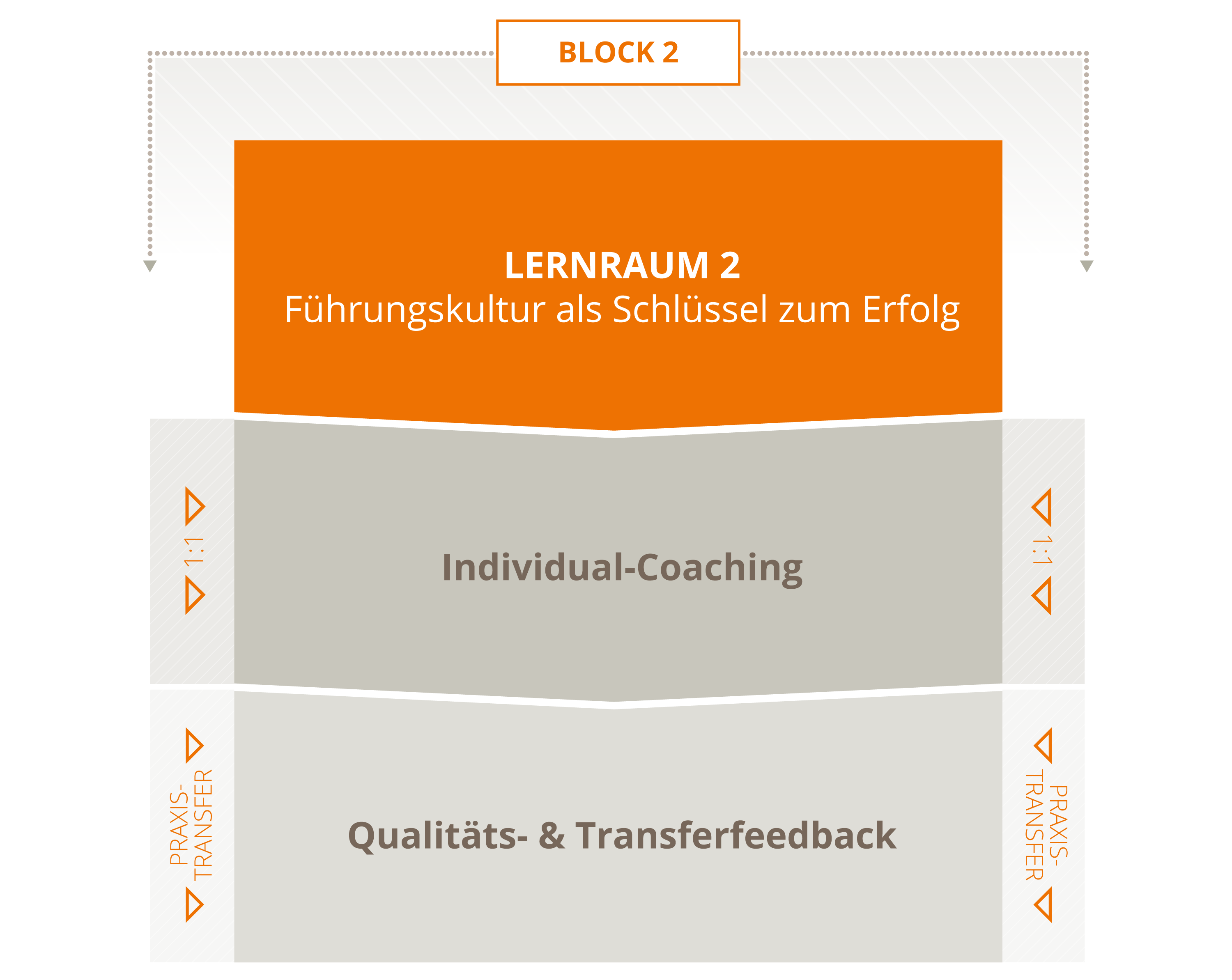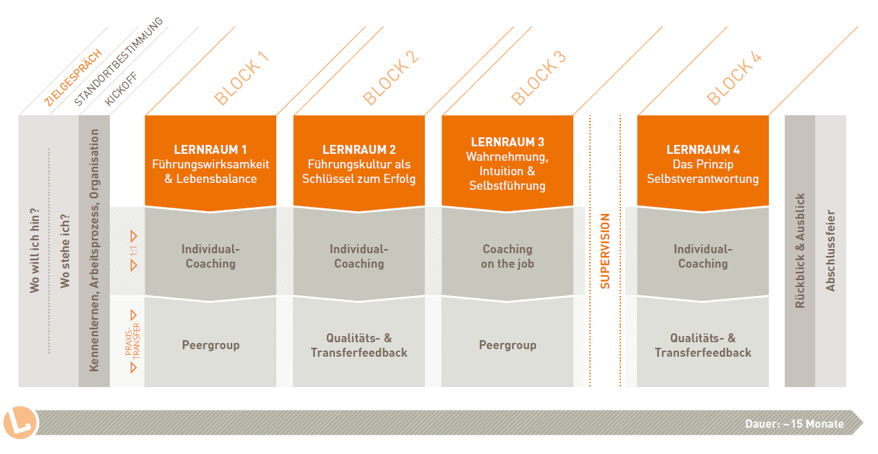 Mit dem systemischen 3-Ebenen-Konzept - Lernräume, Individual-Coaching, Praxistransfer - sichern wir Individualität und Nachhaltigkeit auf einem hohem Qualitätsniveau.